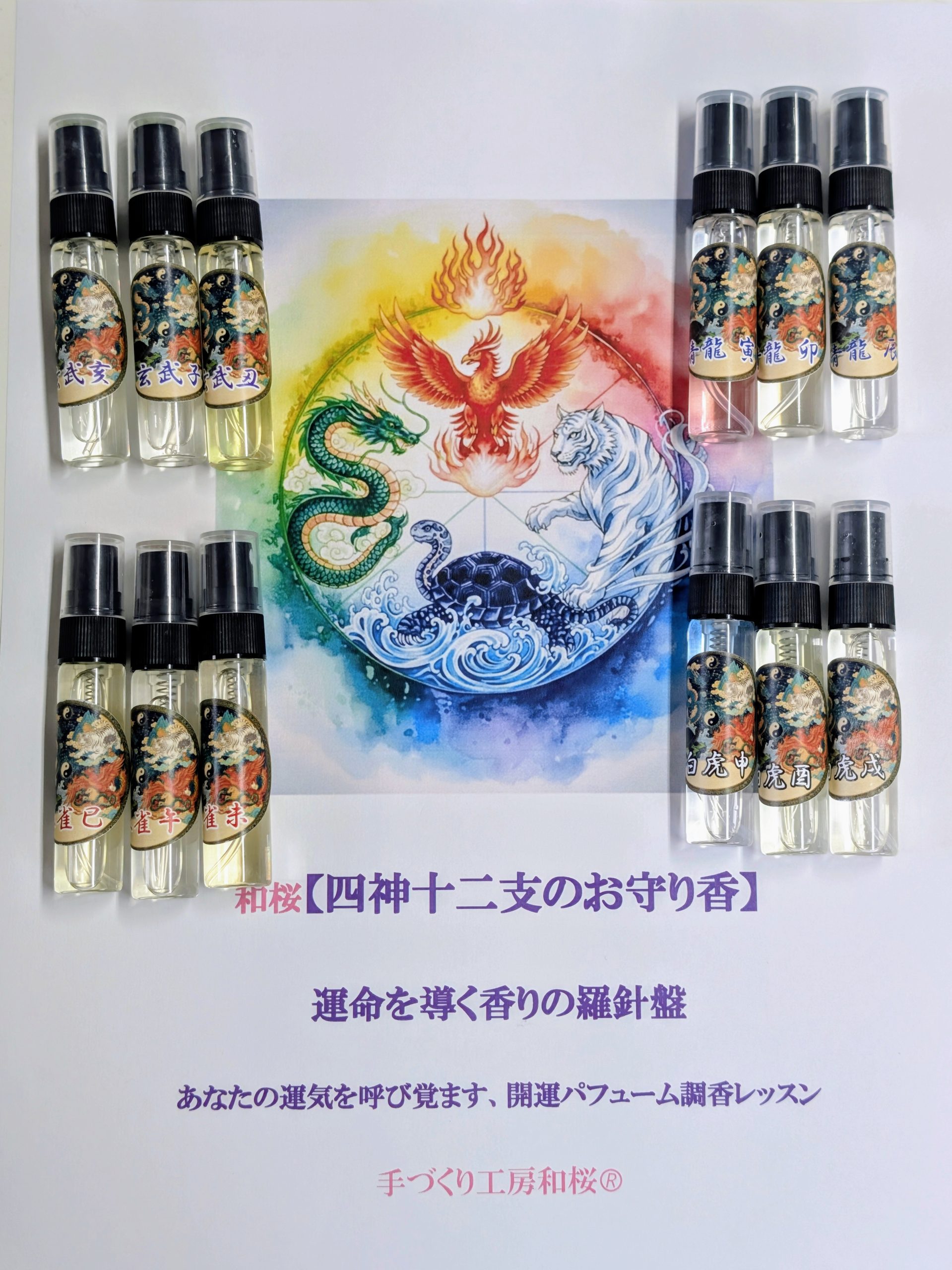 【四神十二支のお守り香】リモート講座のご案内 認定証授与プログラム 【四神十二支のお守り香】リモート講座のご案内 全5回講座募集 〜 守護神獣と干支の力で「運命の香り」を調合し、最良の気を呼び込む風水調香講座 〜 ☆こんな方を募集しています 【一般の方… 詳しくはこちら